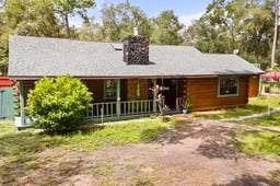 One or more photo(s) has been virtually staged. Retreat to nature and discover the rustic charm of this ONE-OF-A-KIND LOG CABIN HOME ON 5 ACRES with its own HORSE ARENA/PASTURE AND 2 PENS! Enjoy SERENE LIVING on this large shaded property with the SPACIOUS HOME boasting 5 BEDROOMS (5TH bedroom is a BONUS ROOM that can also be a LIVING ROOM) and 3 BATHROOMS, this home is perfect for the New Owner that enjoys LOTS OF SPACE and being CONNECTED in this OPEN FLOOR PLAN HOME. The home is perfect for MULTIGENERATIONAL LIVING, with one of the bedrooms offering its own PRIVATE ENTRANCE and ADJACENT BATH, ideal for an IN-LAW SUITE or GUEST QUARTERS.***BRAND NEW ROOF(2025), NEW WATER HEATER (2025), 2017 AC, NEW STAINLESS STEEL APPLIANCES & MORE!!!*** Everyone will love gathering together in the inviting, open living area with a cozy STONE ACCENTED FIREPLACE, surrounded by elegant EXPOSED CEILING BEAMS & SKYLIGHTS. The kitchen comes fully equipped for chefs with GRANITE COUNTERTOPS, BRAND NEW STAINLESS STEEL APPLIANCES, a large BREAKFAST BAR that seats 4+, and LOTS OF CABINET SPACE. Relax in the comforts of the OWNER'S SUITE, where you’ll find a SPACIOUS BEDROOM with SERENE VIEWS, LARGE WALK-IN CLOSET and EN-SUITE BATH. A LARGE 5TH BEDROOM/BONUS ROOM provides a versatile space to also be a LIVING ROOM or OFFICE with views of the SCREENED-IN PATIO. A COVERED FRONT PORCH with PORCH SWING makes you want to grab your lemonade or coffee and admire the quietness. The SCREENED-IN PATIO & ADDITIONAL PATIO gives you plenty of ways to relax and enjoy the outdoors. A PRIVATE WOOD FENCED YARD off the Screened-In Patio is great for your Furry Friends that need to be contained to a smaller area or a PLAY AREA. The whole property is FULLY FENCED-IN with GATE ACCESS only from the road. The LARGE PROPERTY OFFERS much more areas to EXPAND if the new owner wishes. The WORKSHOP/HOBBY Room includes a Screened area and has electric and water connected. This home is the perfect mix of privacy amidst lush, natural surroundings while still easily accessible and minutes away from Schools, Stores, Restaurants & more. It is only 45 minutes to Orlando and Ocala. It is located minutes away from the Ocala National Forest. Don’t miss this unique opportunity to make this beautiful home & lifestyle yours!