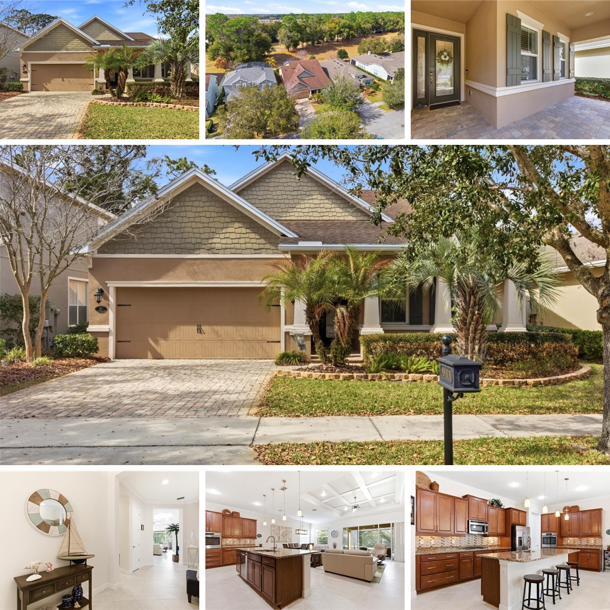 Exceptional Victoria Hills Kolter home, Lantana model, with unobstructed view of the 17th fairway! Welcome to a beautifully updated 2-bedroom plus den with Murphy Bed and office built-ins, 2 baths, and a 2-car garage home, situated on a premium golf course lot. Located in Victoria Park, DeLand, is the area's most sought-after planned community. This move-in-ready home offers natural beauty, comfort, and convenience. From the moment you pull into the paver driveway, you will admire the charm of this Craftsman-style home. The spacious covered front porch is just waiting for a couple of patio chairs to enjoy the peaceful views. Step inside through the elegant glass front door, and you will be impressed by the spacious open concept layout featuring a light and bright great room and separate kitchen and dining areas, the heart and functional center of the home. Neutral 18" ceramic tile on the diagonal, custom blinds, and recessed lighting can be found throughout, with new plush carpet in the bedrooms. The heart of the home is the beautifully updated kitchen with granite counters, a center island large enough for four barstools, solid wood custom cabinetry, gas range, and walk-in pantry, perfect for everyday living and entertaining. The ceilings have crown moldings throughout, with a custom-designed tray ceiling in the great room. The primary suite is a true retreat, offering tray ceilings with a ceiling fan, an updated en-suite bathroom with his and hers vanities, an elegant ceramic tile shower, and a large walk-in closet with ample storage. Wake up and enjoy the tranquil ambiance of this exceptional home. The den has a built-in office with ample file storage, a printer cabinet, a queen Murphy bed, and his and her wardrobes. Relax on the expanded screened lanai with a "picture window" view of the 17th fairway on the award-winning regulation Victoria Hills Golf Course. The indoor laundry room includes a washer, dryer, and utility sink. The 2-car garage features built-in overhead steel storage racks and a pull-down attic stairway. Offering natural beauty, comfort, and convenience, this move-in ready home is perfect for those seeking low-maintenance, elegant living with access to nearby amenities and a welcoming neighborhood atmosphere. Priced to sell! Schedule your showing today.